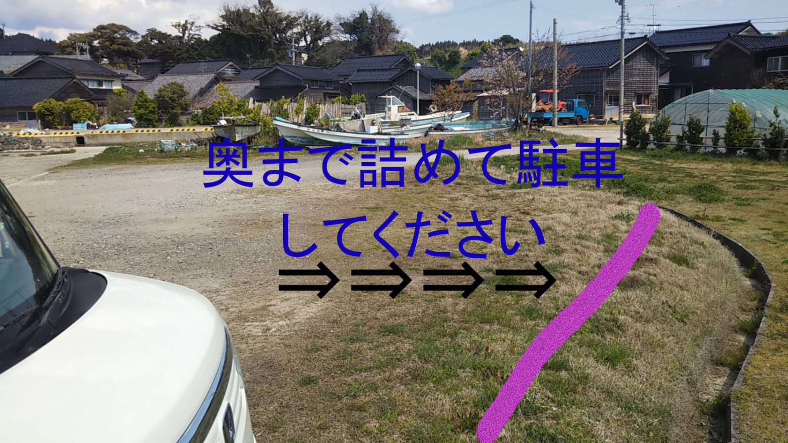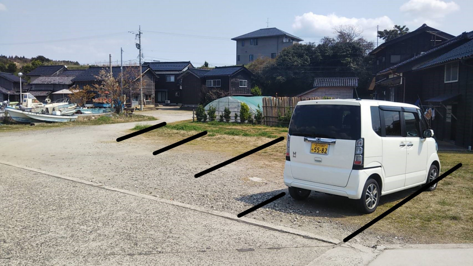 駐車場は鹿波漁港の共同駐車場を利用してください。