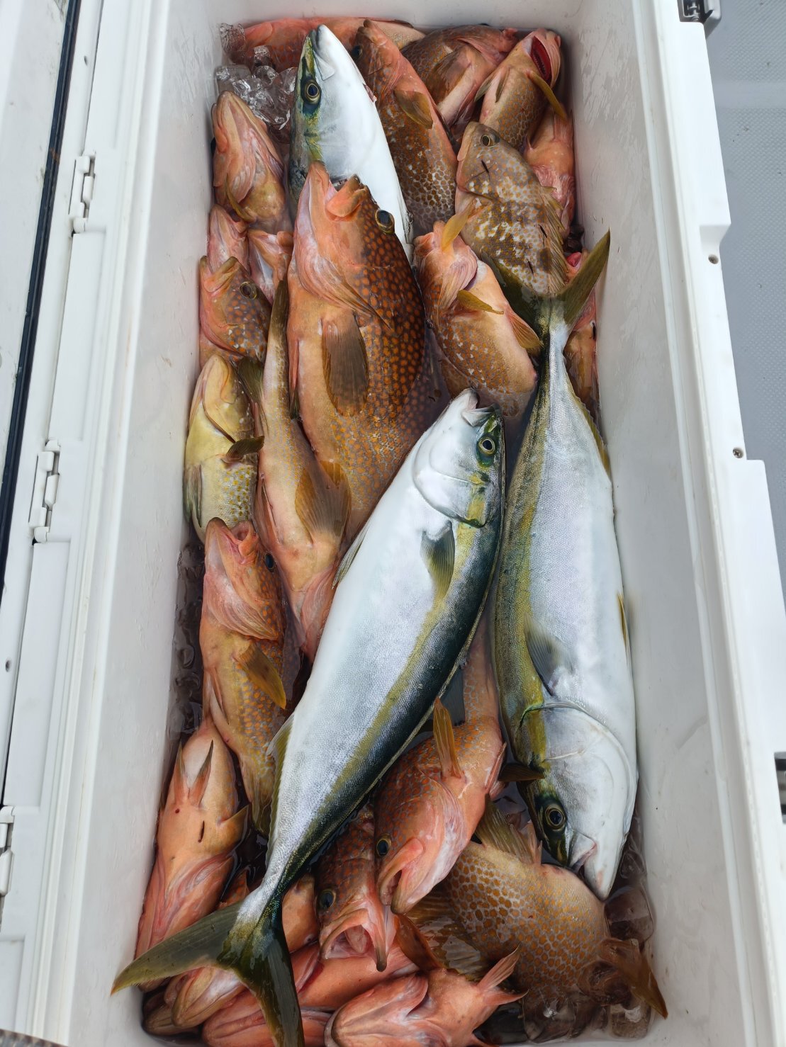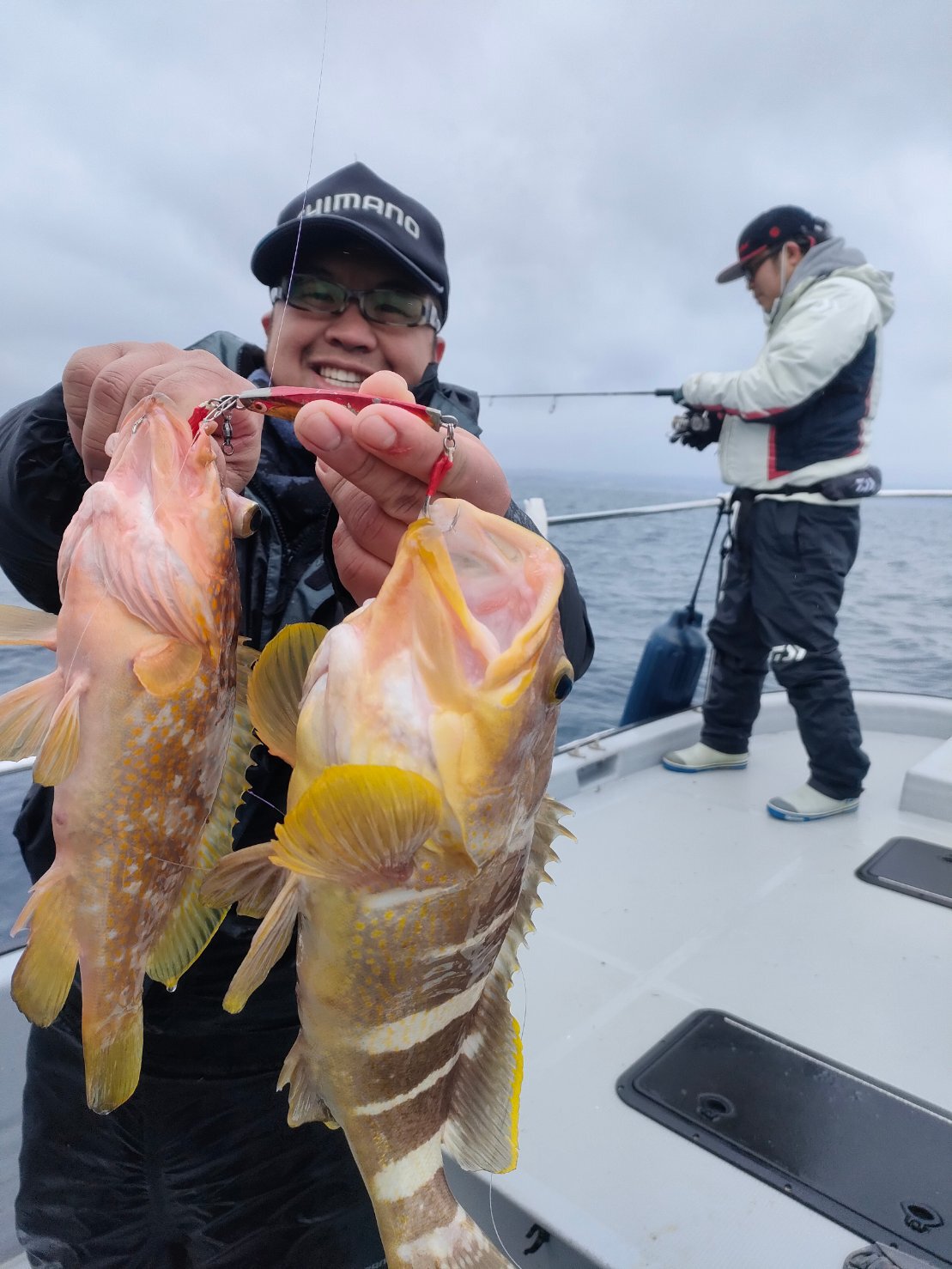 タイラバ、ジグを使い真鯛、青物、根魚などを狙います。